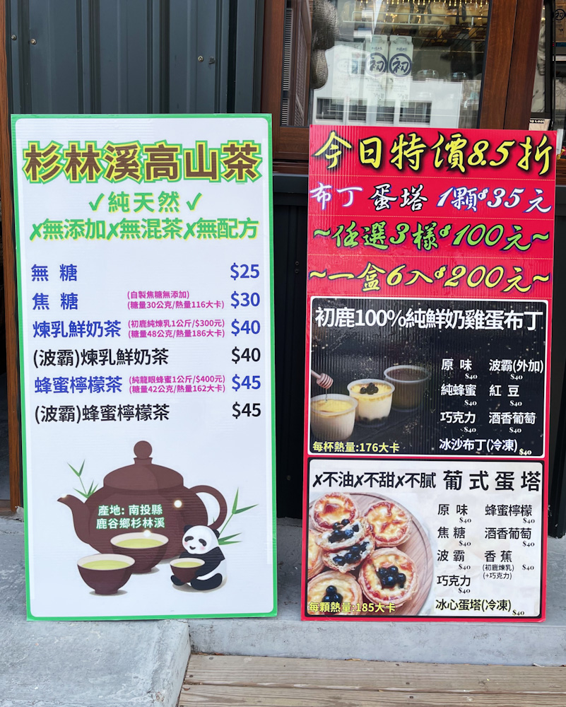 ▲【Mr.Z烘焙小棧】販售的種類很簡單,只有葡式蛋塔和手工布丁2種品項,均一價35元任選3樣100元,一盒6入200元,價錢好親民 ! 還有提供杉林溪高山茶飲品喔 !