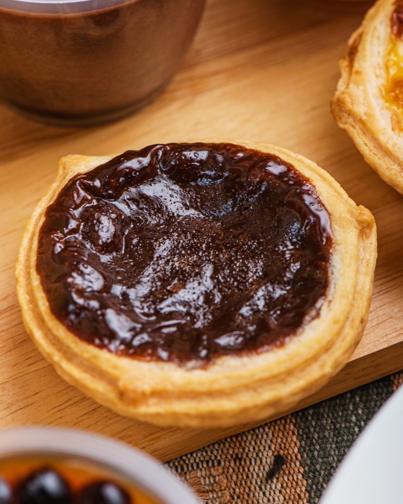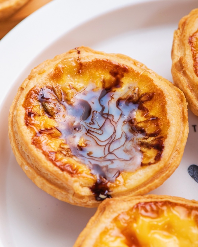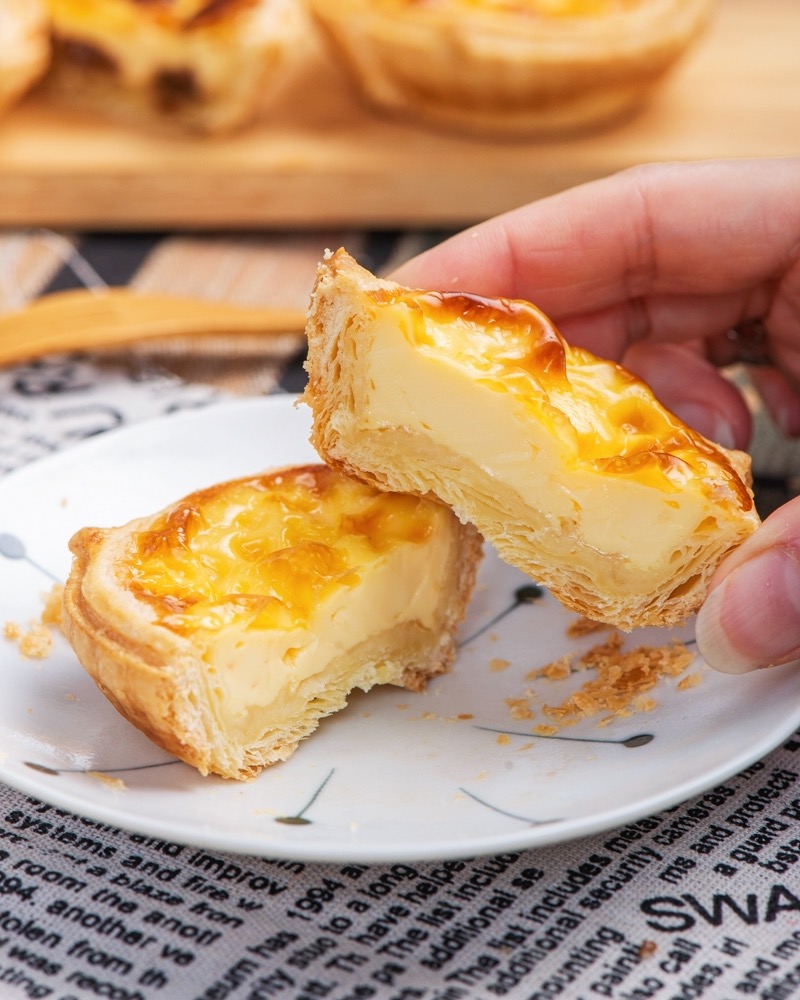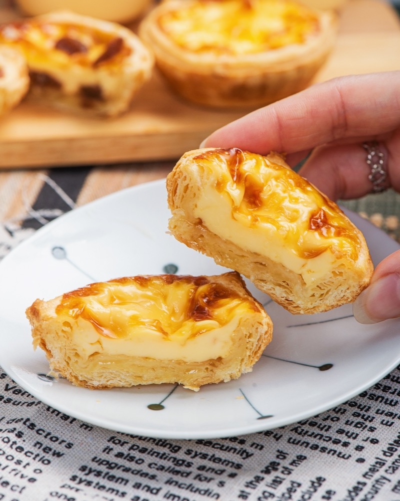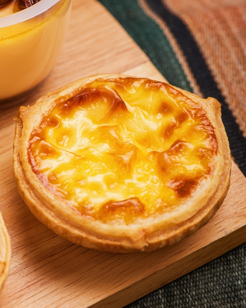 將蛋奶餡注入酥塔皮中,烘烤至表面略呈焦糖化,是百吃不膩的經典風味 ! 手擀酥皮+奶香內餡,做出完美比例的葡式蛋塔。